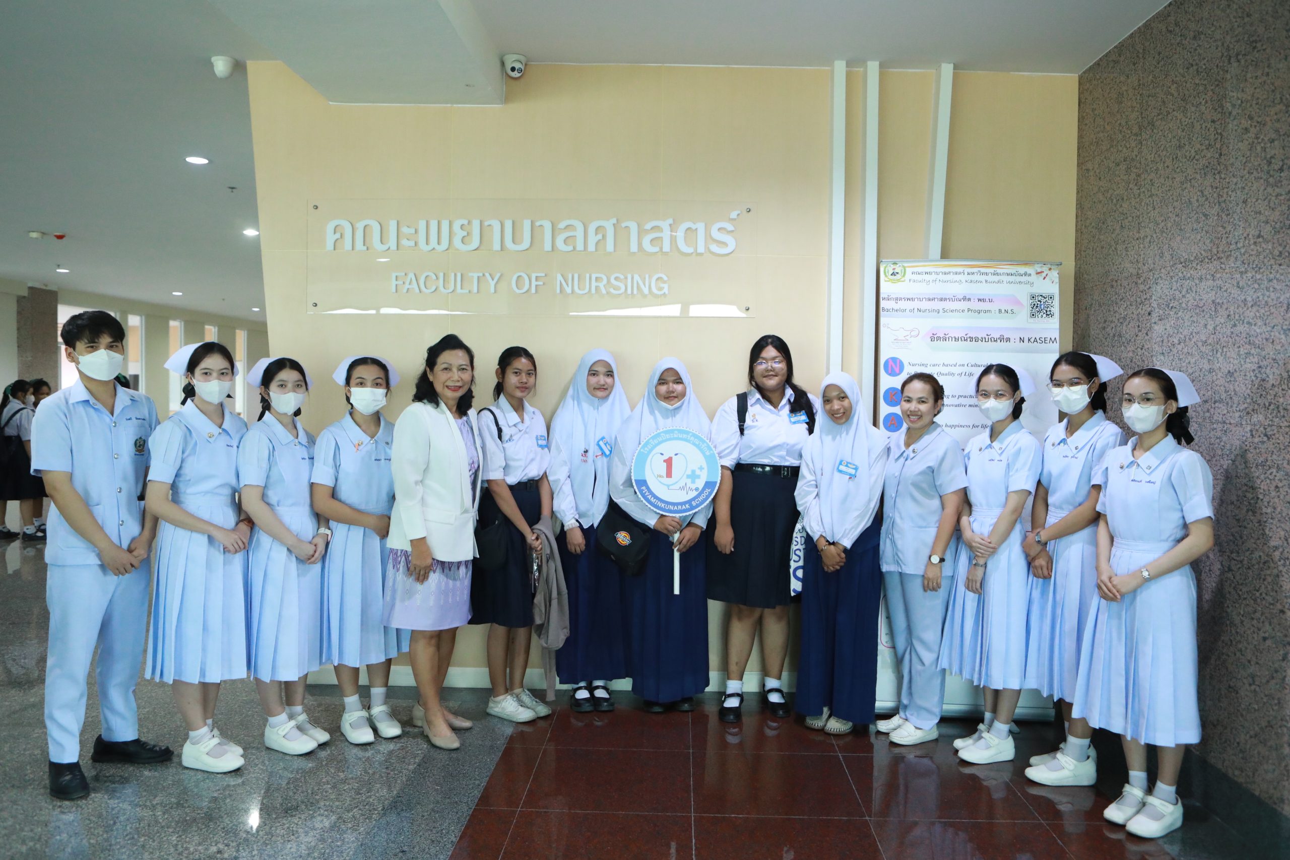 การศึกษาดูงานนอกสถานที่เป็นกิจกรรมที่เปิดโลกทัศน์ให้กับนักศึกษาในการเรียนรู้ทั้งทางด้านการพยาบาล ด้านวิชาการ ศิลปวัฒนธรรม และ สังคมสิ่งแวดล้อมต่างๆ เพื่อนำความรู้มาประยุกต์ใช้ในการทำงานและการดำเนินชีวิตต่อไป โดยมีการศึกษาดูงาน ที่วัดพระแก้วและพระบรมมหาราชวัง ซึ่งเป็นปูชนียสถานที่ทรงคุณค่า มีความงดงามในสถาปัตยกรรมไทย การดูงานพิพิธภัณฑ์การแพทย์ศิริราช ที่จะได้เรียนรู้ด้านประวัติการแพทย์ และ อาจารย์ใหญ่ และกายวิภาคศาสตร์ การศึกษาดูงานคณะพยาบาลศาสตร์ มหาวิทยาลัยเกษมบัณฑิตและมหาวิทยาลัยรังสิตเพื่อเป็นแนวทางการศึกษาต่อสาขาพยาบาลศาสตร์ และผู้ช่วยพยาบาล (PN) รวมทั้งการศึกษาดูงานสถาบันพัฒนาบุคลากรการบิน... อ่านเพิ่มเติม