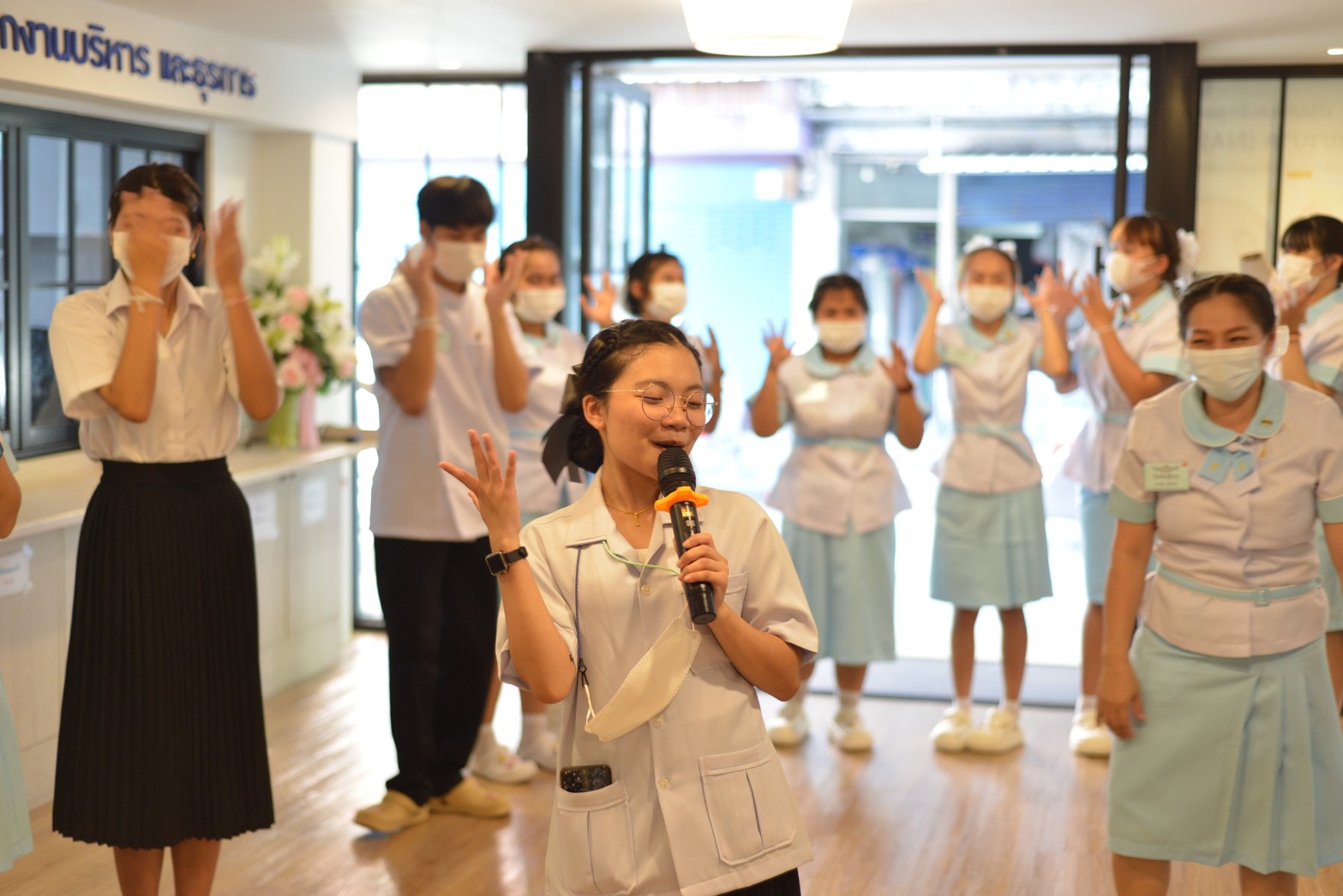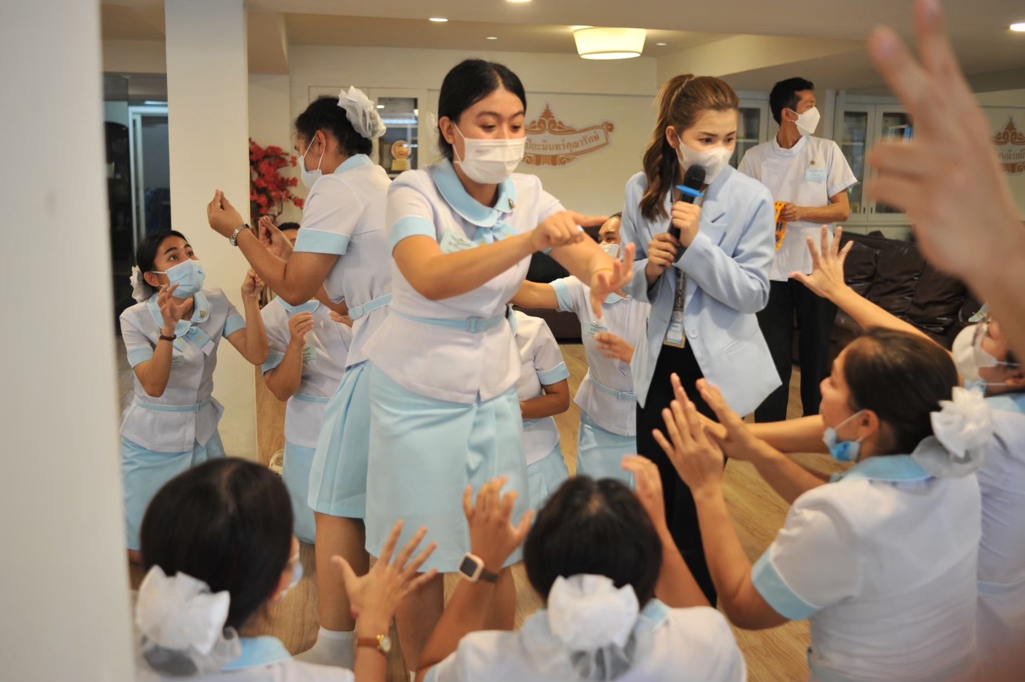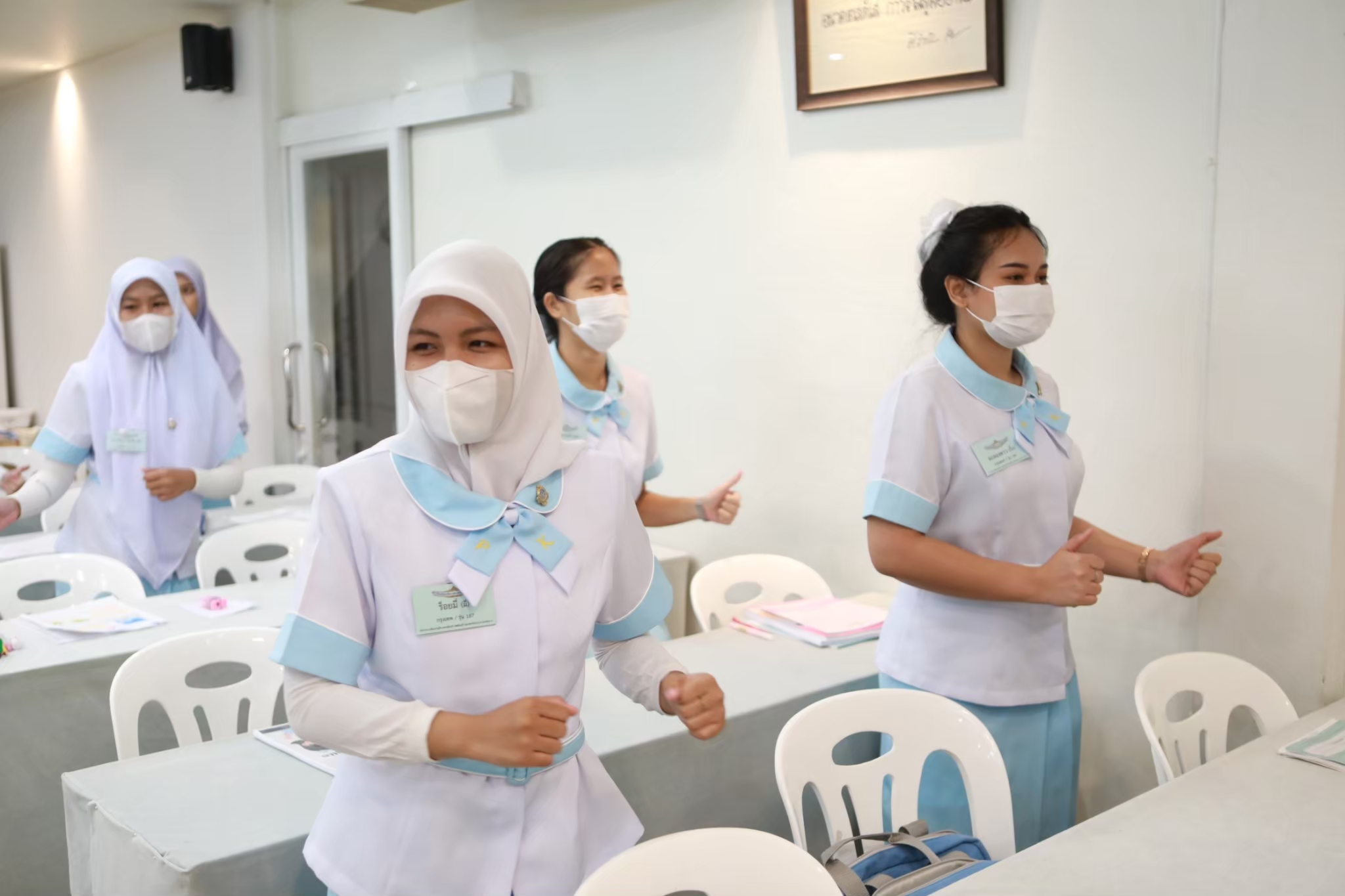 - School atmosphere: Laboratory for child care and basic nursing with complete and modern tools and equipment, including air-conditioned dormitories that can accommodate a large number of students in a convenient and safe school building. - The environment around the school is a school in a convenient community area, near the Fashion Island shopping mall, Big C, Lotus, amusement parks, Siam Park, Safari World, public and private hospitals that are convenient for internships and medical treatment. Convenient transportation: there is the Pink Line electric train and many bus lines passing the school.